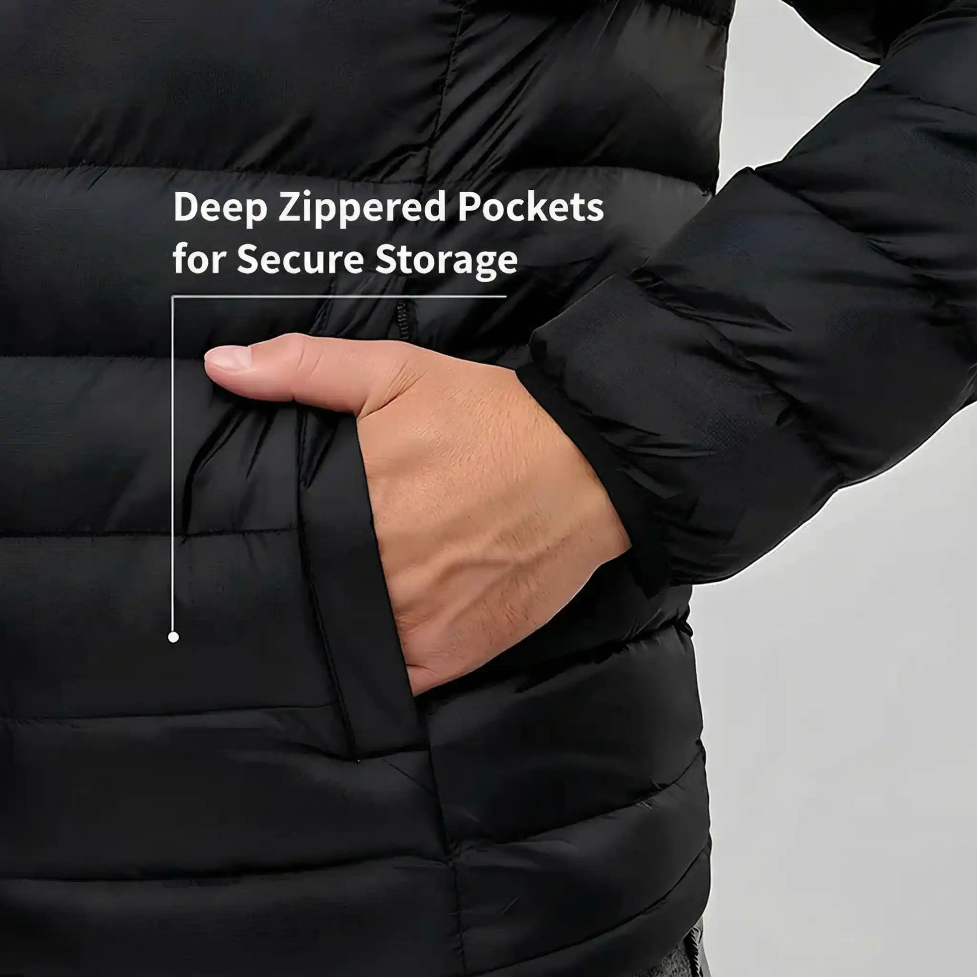 Every key area stays warm: back, chest, lower back, neck, abdomen and pockets — a full-body comfort system engineered for winter.